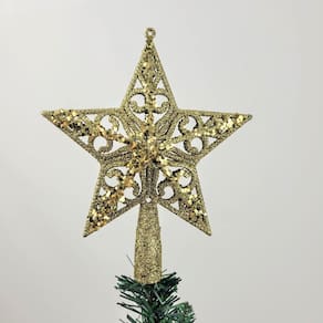 Ponteira De Árvore De Natal Estrela Dourada Flor 18x15x3cm Vem decorar, seja INIGUAL