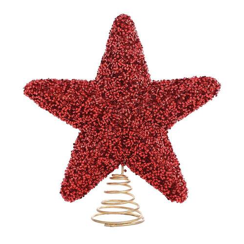 Ponteira De Árvore Decorativa Estrela Na Cor Vermelho Com Glitter, 15Cm.