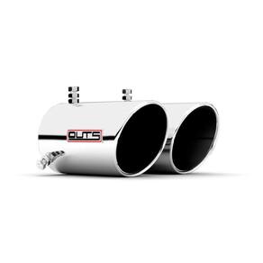Não serve no q5 que tenha escapamento de 3 polegadas acima de 7 cm de diâmetro As ponteiras esportivas outs são fabricadas totalmente em aço inox 304 e recebem um polimento especial. Isso garante um produto de qualidade e brilho incomparável que nunca irá oxidar e nem descascar, melhorando o visual do seu veículo por muito mais tempo