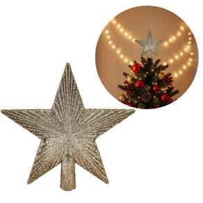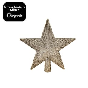 Ponteira Estrela Friso Glitter Champanhe Luxo 15cm Topo de Árvore Natalina