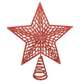 Ponteira Estrela Vazada Glitter Vermelho Luxo Espiral 20cm
