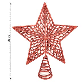 Eleve o topo da sua árvore de Natal a um nível de brilho e elegância com a nossa deslumbrante Ponteira de Árvore em Formato de Estrela Vazada com Glitter Vermelho. Essa ponteira de 20cm de altura irá adicionar o toque perfeito de festividade e sofisticação à sua árvore.