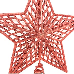 Dê à sua árvore de Natal o topo que ela merece com a Ponteira de Árvore em Formato de Estrela Vazada com Glitter Vermelho. Garanta a sua enquanto durarem os estoques!