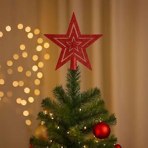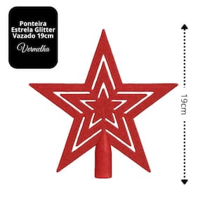 Dê o toque final à sua árvore com brilho e charme! A Estrela Ponteira Vermelha Glitter Vazado é o símbolo perfeito para celebrar a magia do Natal com elegância e tradição.