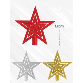Ponteira Para Arvore de Natal Estrela Vazada 13cm Glitter Decore sua avore de natal com essa linda Ponteira Estrela Esse modelo é confeccionado de material resistente e tem o design de etrela vazada para deixar sua decoração mais completa e trazendo um toque de luxo pra sua arvore Essa ponteira estrela traz todo espírito natalino e um toque elegante para a sua arvore nessa época linda e importante que é o Natal. Possui 13 cm e de facil encaixe Adquira já