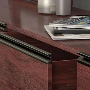 A ponteira de acabamento, modelo 0258 para perfil puxador da renomada marca DMT, é um acessório exclusivo para o perfil puxador 0258 da mesma marca, que se assemelha ao puxador Collegato. Este modelo é projetado para se encaixar perfeitamente em MDF de 18 mm. Fabricada em zamac, uma liga composta de zinco, alumínio, magnésio e cobre, a ponteira se destaca por sua durabilidade e resistência. O acabamento fosco e a coloração em bronze proporcionam um visual elegante e moderno, completando o móvel com um toque profissional. Além de melhorar a aparência dos móveis, essa ponteira protege as extremidades dos perfis puxadores contra arranhões, batidas e desgaste, aumentando a vida útil dos móveis. Também contribui para a segurança ao reduzir o risco de acidentes com bordas afiadas.