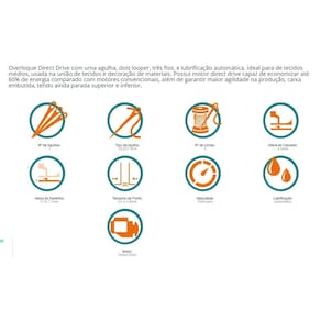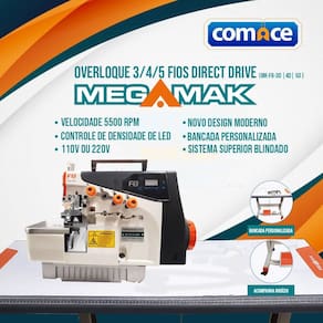 Motor Eletrônico Direct Drive Potência: 550W Tensão: Bivolt 4 Fios Bitola: média Velocidade: 6.000 rpm Largura do Chuleado: 6 mm Comprimento do Ponto: 0,5 a 3,8 mm Número de agulhas: 2 Distância entre Agulhas: 2 mm Tipo de Agulha: DCx27 Lubrificação Automática Altura do Calcador: 6 mm Voltagem 110v OU 220V