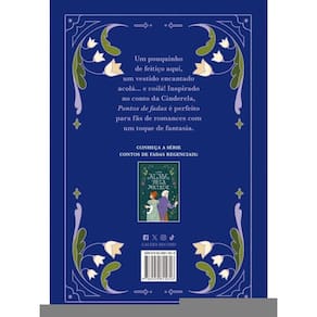 Effie Reeves só queria um amor tranquilo e uma vida digna. Mas tudo isso parece estar tão fora da sua realidade… E ela não contava que um feérico intrigante pudesse surgir em seu caminho e mudar tudo. Inspirado no conto de Cinderela, Pontos de fadas é perfeito para fãs de romances com um toque de fantasia. Effie está caidinha pelo elegante Sr. Benedict Ashbrooke, irmão de seu patrão. Até estaria tudo bem se não fosse por um probleminha: ela é apenas uma criada, e criadas não se casam com cavalheiros da alta sociedade. Além do mais, a sensação é de que a vida dela está indo de mal a pior. A maior prova disso é quando seu caminho cruza com o de Lorde Blackthorn, um feérico muito interessado na cultura inglesa. Ela sempre temeu fazer acordos com feéricos, mas, apesar de ser resistente às propostas de Lorde Blackthorn, a rotina de criada é tão terrível que ela está disposta a arriscar o próprio destino por uma chance de algo melhor — e, quem sabe, ser notada e amada. Então os dois fazem um trato: ele a ajudará a conquistar o coração do Sr. Ashbrooke e, em troca, ela deverá costurar dez mil pontos na casaca favorita dele. Agora, Effie tem cento e um dias — e dez mil pontos — para fazer o Sr. Ashbrooke se apaixonar e pedi-la em casamento. Porém, talvez o maior desafio de todos seja não começar a ver com outros olhos o feérico de quem tanto desconfia. Pontos de Fadas é a continuação de Uma alma pela metade , perfeito para fãs de Bridgerton, Castelo animado e Orgulho e preconceito e com capa inédita da ilustradora Isadora Zeferino.