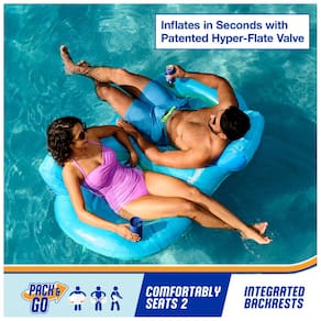 - Assentos para 2 adultos: relaxe com um amigo, pessoa querida ou família no novo Spring Float Duo, com 2 assentos estilo cadeira para que você possa relaxar com outra pessoa enquanto flutua