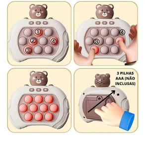 Uma explosão de diversão para todas as idades. Estoure todas as bolhas acesas assim que elas aparecerem. Um jogo divertido e ótima experiência sensorial. Ajuda na concentração, desenvolvimento das atividades motoras dos pequenos É um envolvente brinquedo portátil com sons e luzes, proporcionando interação e empolgação. Idade recomendada: 3+ anos Material: Plástico Funcionamento: 3 pilhas AAA (não inclusas) Medidas Aproximadas: 12cm x 12,8cm x 6cm Modo 1: Modo inovador, Modo 2: Modo de memória, Modo 3: Modo de pontuação, Modo 4: Modo multijogador