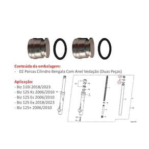 Porca Cilindro Bengala + Anel Vedação Biz 110i Biz 125 Par Aplicação: - Biz 110i 2018/2023 - Biz 125 Ks 2006/2010 - Biz 125 Es 2006/2010 - Biz 125 Ex 2018/2023 - Biz 125+ 2006/2010 Conteúdo da embalagem: - 02 Porca Cilindro Bengala Com Anel Vedação Duas Peças Marca: Não Informado Ean: 7808388483988