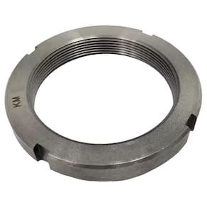 - As porcas de fixação KM com roscas métricas são usadas para fixar rolamentos em um eixo.
