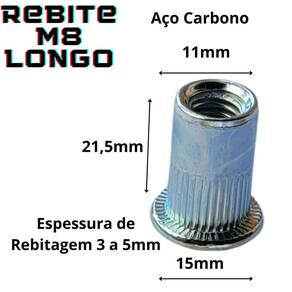 Porca Rebite M8 Com Rosca Aba Plana Longo Arrebite 20 Peças