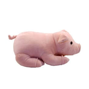 Porquinho rosa, super fofo com textura mais lisa, tipo suede. Material: poliéster; enchimento: fibra de poliéster Produto certificado por órgão acreditado pela ce-Bri/icepex-N 00040-16 Nbr nm 300/2004 Código: bbl1131s-F Peso: 400 g Altura: 14 cm Largura: 22 cm Comprimento: 29 cm