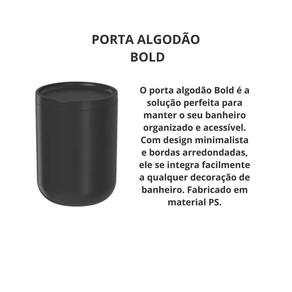 Porta Algodão Bold O porta algodão bold é a solução perfeita para manter o su banheiro organizado e acessível. Com design minimalista e bordas arredondadas, ele se integra facilmente a qualquer decoração de banheiro. Fabricado em material PS. Características do Produto: Medidas: