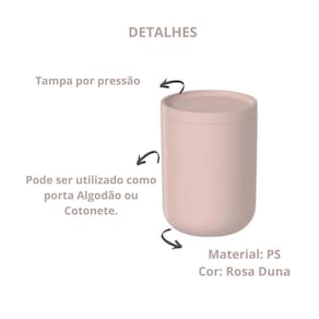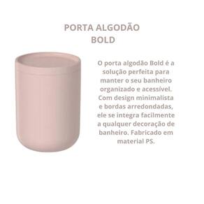 Porta Algodão Bold O porta algodão bold é a solução perfeita para manter o su banheiro organizado e acessível. Com design minimalista e bordas arredondadas, ele se integra facilmente a qualquer decoração de banheiro. Fabricado em material PS. Características do Produto: Medidas: