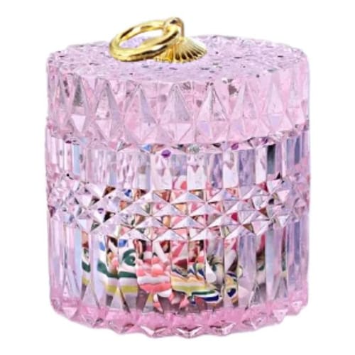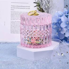Porta algodão cotonete vidro rosa potiche tampa 10x10 Confeccionado em vidro lapidado na cor ambar, o porta algodão/cotonete com tampa esbanja elegância.