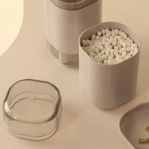 O Porta Algodão Cotonete Dual é o item perfeito para quem busca aliar funcionalidade e organização para os itens de higiene pessoal sobre o lavabo. Com design geométrico e bordas arredondadas, o porta algodão possui tampa translúcida que permite uma boa visualização do conteúdo, além de ser compacto, podendo se encaixar em qualquer lugar do banheiro.