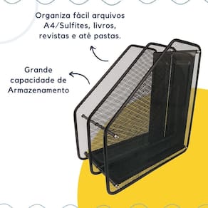 Organizador preto - porta pastas, porta revistas, porta arquivos e documentos Deixe seu escritório mais arrumado. Com esse organizador você gerenciará melhor todos os seus arquivos, documentos, livros e revistas tornando mais fácil o seu trabalho. E você vai evitar a perda de tempo procurando os itens de que precisa e que usa com frequência. Tudo estará a sua mão. Ele é multifuncional, você pode armazenar todos os tipos de arquivos a4 ou sulfite. Além de porta arquivo, também serve como porta livro, porta revista, cadernos, catálogos, folders e pastas. Pode ser no escritório, na ção, no caixa da empresa. Características: - grande capacidade de armazenamento, essencial para escritório - por ser sobre a mesa, fixado na parede ou sobre o chão. Especifícações: - material: metal - cor: preto - peso: 900gr - tamanho: 31,5x29x16cm altura x comprimento x largura Marca: Não Informado
