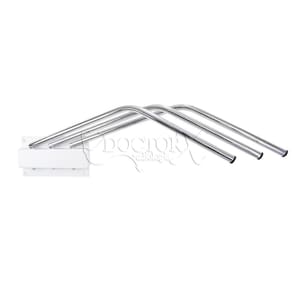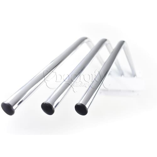 Porta avental para ser fixado à parede do tipo cabide basculante para acomodar até 3 aventais de cinza, com suporte construído em aço tratado e pintado e cabides basculantes em aço cromado. aventais não inclusos