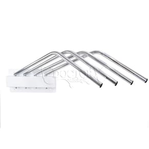 Porta avental para ser fixado à parede do tipo cabide basculante para acomodar até 4 aventais de cinza, com suporte construído em aço tratado e pintado e cabides basculantes em aço cromado. aventais não inclusos