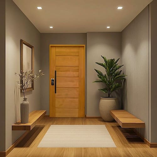 O Kit Porta Pronta de Madeira da Rodam é uma excelente escolha para quem deseja autonomia e praticidade, o kit acompanha fechadura, dobradiças, batente e a folha da porta em vários tamanhos que proporciona beleza e durabilidade ao ambiente. Ambientes Recomendados: Externo Acabamento do Puxador: Inox Acompanha Batedor: Não Acompanha Batente: Sim Acompanha Dobradiça: 03 Acompanha Fechadura: Sim Acompanha Guarnição: Não Acompanha Manual de Instalação: Sim Acompanha Puxador: 01 Acompanha Trinco: Não Altura: 210 cm Ambiente Principal: Sala de Estar codigo_ean: 7899701342747 Cor do Batente: Marrom Dimensão da Máquina da Fechadura: 40.0000 Elétrica: Não Isolamento Acústico: Não Itens Inclusos: 1 Porta e Kit Ferragens Lado de abertura: Direita Largura: 92 cm Largura do Batente: 14 cm Linha ou Coleção: 3B Manual de Montagem e Instalação: https://product-hub-prd.madeiramadeira.com.br/999858/documents/53cbc4e0-9fb9-4ffa-bd32-163956f6285a02481744290770999858170841.pdf Marca: Rodam Material do Batente: Madeira Material do Puxador: Alumínio Material Principal: Madeira Maciça Necessita Montagem: Não Número de Folhas: 01 Origem do Produto: Nacional Peso: 59 kg Possui Grade: Não Preenchimento da Porta: Maciça Recomendações de Uso, Manutenção e Limpeza: Manter a limpeza do produto com pano seco e espanador, sem uso de agentes químicos. Resistência à Água: Não Textura da Porta: Almofadada Tipo de Dobradiça: Simples Tipo de Porta: Abrir Tipo de Puxador: Externo Vidro incluso: Não Marca: Não Informado