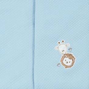 DIFERENCIAIS Nossas malhas 100% algodão passam por rigorosos processos de qualidade. Selecionamos fios de algodão com fibras longas e de altíssima qualidade, proporcionando um toque suave e duradouro em nossos suedines. Nossas tecelagens utilizam teares modernos que transformam os melhores fios em malhas estáveis, duradouras e confortáveis, com um nível ideal de gramatura, permitindo uma troca de temperatura natural e saudável entre a pele sensível do bebê e o ambiente. Nossas estampas digitais são produzidas com os métodos mais modernos do mundo, resultando em desenhos autorais com traços delicados e suaves. As tintas utilizadas possuem certificação OEKO-TEX® ECO PASSPORT e são à base de água, tornando o processo totalmente ecológico e seguro para a pele humana. Isso nos permite economizar até 95% dos recursos ambientais em comparação com outros métodos tradicionais da indústria têxtil. - Estampa exclusiva Hug