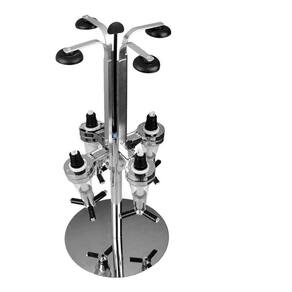 Dispenser Dosador e Suporte Giratório para 4 GarrafasRotating Bar Buttle for Drinks4 Suportes45ml por doseSuporta garrafas de até 1 litroSistema Giratório de servirFabricado em Alumínio, Aço Inox e ABSO Dispenser giratório para 4 garrafas é muito prático, sofisticado e moderno, perfeito para seu barzinho, adega ou até mesmo para presentear alguém especial. Além de usual, torna-se um item de decoração para seu bar, residencial ou comercial ou sua adega.Design moderno com base resistente, traz requinte e beleza para seu bar.Suporte com base giratória para 4 garrafas.Bicos anti -vazamento, evitam desperdícios.Quando acionado, o Dispenser derrama 45 mlHastes de alumínio com mola de alta pressão, conferem qualidade e durabilidade.Encaixe com molas para até 4 garrafas de bebidas de vários tamanhos até 1 litro.Material: Aço inox, alumínio e ABSMedidas do produto montado: (C x L x A)24 x 24 x 54cmPeso do produto: 1,5 kgDiâmetro da base: 24 cmQuantidade de torneiras: 4Sistema giratório Dose: 45 mlDimensões da caixa: (C x L x A)27 x 27 x 34cmPeso da embalagem: 1,7 kgObs.: Garrafas e copos não inclusos (meramente ilustrativos) Ean: 7908045126965