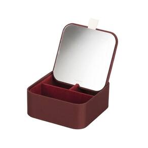Todo na cor bordô e contando com um tamanho compacto, ele é ideal para se ter sempre ao lado, seja em cima da penteadeira ou até mesmo sobre a mesinha de cabeceira. Já em sua parte interna, além de três nichos para você organizar seus brincos, pulseiras, aneis etc., ele ainda traz um espelho para que você possa ver sempre a sua beleza refletida enquanto capricha nos looks!