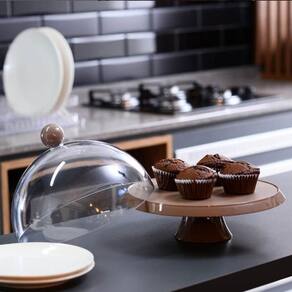 Porta Bolo 25cm Bubble com Cúpula e Pé Crippa Amêndoa Tortas Doces Boleira.