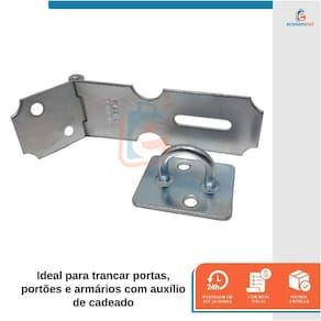 O Porta Cadeado Aliança é ideal para trancar portas, portões e armários com auxílio de cadeado. Seu design moderno e de excelente qualidade garante resistência contra a oxidação. CARACTERÍSTICAS TÉCNICAS:Material: Aço zincadoMedidas: 2 63mm Não acompanha pregos e parafusosMarca: AliançaRef: 11073001