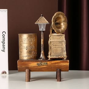 Material: plástico Tamanho: 15* 7* 20 cm Peso: 480 g Design de gramofone retrô — Apresenta uma réplica clássica de fonógrafo com detalhes elegantes, adicionando charme francês vintage a qualquer mesa. Característica Mini Night Light — A pequena lâmpada embutida fornece iluminação suave, perfeita para um ambiente aconchegante de mesa ou cabeceira. Material plástico durável — Feito de plástico de alta qualidade, leve e resistente, com acabamento em estilo retrô metálico. Organizador de mesa funcional — funciona como porta-canetas, porta-lápis ou pote para canetas, ideal para canetas, lápis, réguas ou pequenos itens de papelaria. Decoração com várias cenas — Medindo 15720 cm e pesando 480 g, é adequada para mesas de escritório, salas de estudo, salas de estar ou adereços fotográficos.