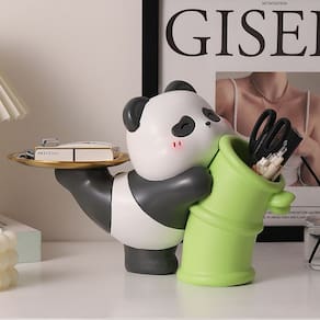 Material: Resina Tamanho: 32* 14* 21 cm Peso: 1000 g Design adorável de panda: apresenta um panda brincalhão segurando um recipiente de bambu verde com uma bandeja adicional, combinando charme de desenho animado com uso multifuncional. Armazenamento multiuso: funciona como porta-canetas, porta-lápis ou pote para canetas, enquanto a bandeja é perfeita para organizar chaves, moedas, óculos ou pequenos itens de escritório. Construção durável em resina: feita de resina de alta qualidade, resistente e estável, garantindo uso duradouro para organização e decoração diárias. Organizador de mesa: mantém canetas, tesouras e acessórios bem armazenados, reduzindo a bagunça e aprimorando a estética do espaço de trabalho. Decoração versátil: adequada para casa, escritório, sala de estar ou espaços de entrada, servindo como um organizador funcional e um charmoso acessório de mesa.