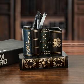 Material: MDF Tamanho: 15* 6,5* 13,5 cm Peso: 2.000 g Design de livro vintage: porta-canetas exclusivo com estilo de livros clássicos empilhados com padrões dourados detalhados, adicionando um charme retrô elegante a qualquer mesa ou sala de estudo. Armazenamento multifuncional: funciona como porta-canetas, porta-lápis ou pote de canetas, com compartimentos para canetas, réguas, tesouras e pequenos acessórios. Gaveta adicional: possui uma gaveta embutida na base para armazenar clipes, borrachas ou outros itens essenciais de escritório, combinando praticidade com design criativo. Material de madeira durável: feito de madeira MDF resistente, garantindo durabilidade duradoura e uma estrutura sólida para o uso diário. Organizador de mesa: mantém o papel de carta bem organizado enquanto serve como um organizador de mesa decorativo, perfeito para interiores em estilo de escritório, casa ou biblioteca.