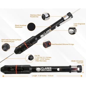 A satisfação do nosso cliente não deixa espaço para compromissos. A ClarkeBrothers se concentra em fornecer ferramentas de soldagem inovadoras e práticas destinadas a aumentar o desempenho e tornar sua vida mais fácil e segura. Trabalhamos com materiais premium e fornecedores testados, a fim de atender às suas rigorosas expectativas. Se você não estiver totalmente satisfeito com seu pedido, não hesite em entrar em contato com nosso departamento de atendimento ao cliente! A melhor ferramenta de soldagem para profissionais. Este soldador tig é definitivamente uma obrigação para qualquer soldador profissional, contribuindo para uma maior eficiência e mantendo lesões indesejadas no mínimo. Feito com alumínio resistente e acabamento antiferrugem superior, com um design ergonômico elegante que é antiderrapante e confortável, este suporte de caneta permite o controle ideal sobre o fio, ao mesmo tempo em que economiza seu tempo e energia. Ainda não está convencido? Aqui estão algumas das características incríveis deste produto: Clipe de bolso de aço; A ferramenta pode servir: 1, 1,6, 2,6, 3,1, 3,4 mm; 0,035 pol. - 0,14 polegadas - tamanhos de haste de enchimento; Cor anodizada preta; Acabamento moderno e elegante; Inclui estojo de armazenamento de metal; Superfícies serrilhadas de ambas as extremidades para maior aderência; Logotipo impresso. Design seguro e durável. Ideal para profissionais e iniciantes. Você vai se apaixonar instantaneamente por esta caneta tig premium! - Patente pendente – a ferramenta perfeita do soldador: procurando uma maneira de manter seus dedos protegidos sem ter que comprometer sua qualidade de soldagem? Você gostaria de maximizar seu desempenho de soldagem e aumentar a precisão? O soldador de arame Clarke Brothers é a melhor ferramenta! - Construção premium: esta caneta de solda tig é feita com materiais de qualidade superior altamente duráveis, uma combinação de corpo de alumínio com clipe de bolso de aço com um elegante acabamento anodizado preto, garantido que não enferruja ao longo dos anos. - Design seguro: com uma aderência antiderrapante confortável, design leve e portátil e clipe de bolso prático, esta caneta de solda aumenta seu desempenho, mantém seus dedos seguros de possíveis lesões ou queimaduras e economiza seu tempo! - Estojo de armazenamento: ao contrário de produtos semelhantes no mercado, essas ferramentas de soldagem vêm com um estojo de armazenamento de metal incluído, sendo fáceis de armazenar a longo prazo. Uma excelente escolha para trabalho em movimento ou de emergência! - Precisão melhorada: o uso de uma caneta tig permite que você controle melhor seu fio, controle manualmente e garanta um fio de velocidade uniforme, resultando em trabalhos de soldagem de qualidade superior, mínimo de tempo, energia e desperdício de material.