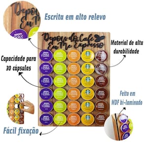 Marca de Cápsula: Dolce Gusto Marca: Facris Material: MDF Quantidade: 30 cápsulas Altura: 42cm Largura: 30cm Profundidade: 3cm Peso: 900gr.