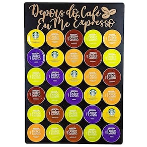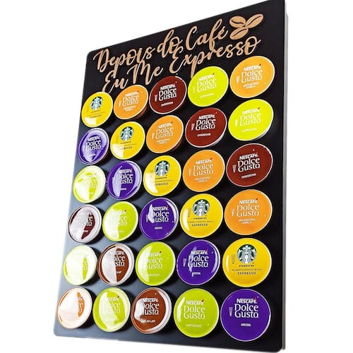 Uma peça com design moderno feita em MDF pintado com tinta automotiva de Altíssima Qualidade e acabamento impecável. As frases confeccionadas neste porta cápsulas são feitas em alto relevo com corte a laser, fazendo com que a peça tenha um requinte especial e diferenciado no mercado.Acabamento do material
