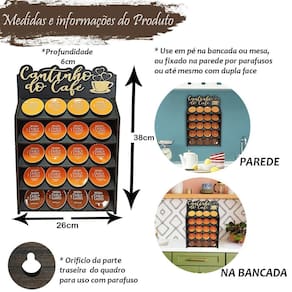 Uma peça com design moderno feita em MDF bi-laminado da Altíssima Qualidade e acabamento impecável. As frases confeccionadas neste porta cápsulas são feitas em alto relevo com corte a laser, que faz com que a peça tenha um requinte especial e diferenciado no mercado. Compre já o seu
