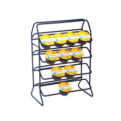 Porta Capsulas Due Lati Mod Tres Corações Preto - Jomer 2427 - Organiza suas cápsulas - Uso apoiado em Bancada - Compatível com cápsulas Due Lati Mod Tres Corações - Funcionalidade e organização, inclusive, para ambientes de área reduzida. - Praticidade, design e sofisticação. - Versatilidade e Bom Gosto para o seu dia-a-dia. Material: Aço Cromado Capacidade: 32 cápsulas Medidas: 190x265x110mm (L x A x P) Fabricante: Aramados Jomer * Foto meramente ilustrativa. As cápsulas não acompanham o Suporte.