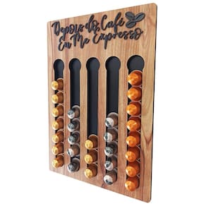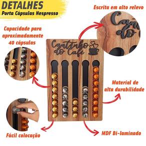 Porta Cápsulas Nespresso - Nogueira - Depois Café Expresso Nada como tomar aquele café expresso feito na hora é E ainda mais poder escolher de forma prática seu sabor predileto, já pensou Pensando nisso trazemos aqui para você nosso exclusivo e moderno porta cápsulas para cafeteira NESPRESSO. Um produto para quem gosta de organização e praticidade, pois com ele você organiza suas cápsulas e ainda por cima decora seu cantinho do café, deixando-o ainda mais agradável Uma peça com design moderno feita em MDF bi-laminado da Altíssima Qualidade e acabamento Diferenciado. As frases confeccionadas neste porta cápsulas são feitas em alto relevo com corte a laser, que faz com que a peça tenha um requinte especial e diferenciado no mercado.