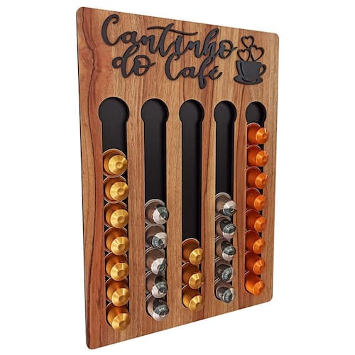 Uma peça com design moderno feita em MDF bi-laminado da Altíssima Qualidade e acabamento impecável. As frases confeccionadas neste porta cápsulas são feitas em alto relevo com corte a laser, que faz com que a peça tenha um requinte especial e diferenciado no mercado. Compre já o seu