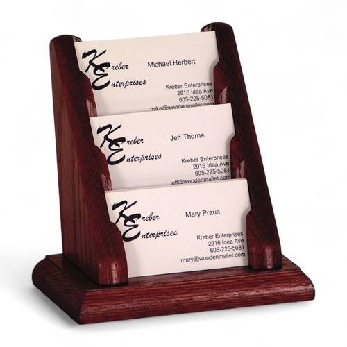 Porta-cartões de visita, martelo de madeira, bancada de 3 bolsos