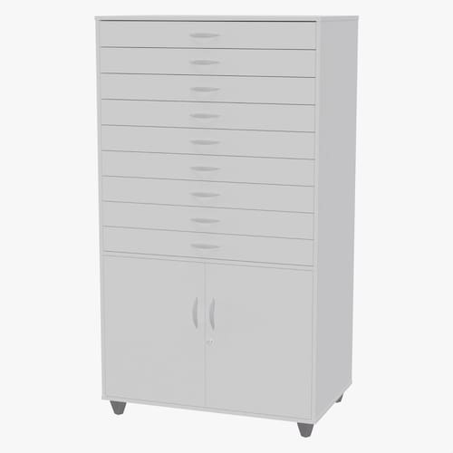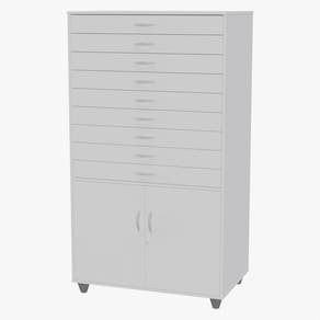 Otimize seu espaço de trabalho com o Armário Porta Cartolina 9 Gavetas com Balção, pode ser utilizaos em escolas ou papelarias, fabricado em MDP 15mm com fundo em eucatex 2,5mm, acabamento em fita de borda 0,45mm.