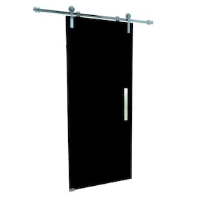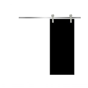 - 1 Folha de porta Preta Laqueada1 kit celeiro na cor Alumínio Polido1 kit ferragens pra instalação1 puxador1 manual de instalação