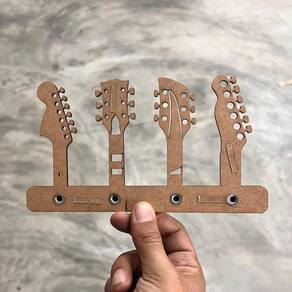 Design exclusivo em formato de guitarras Fixação rápida e segura Produto artesanal com acabamento impecável