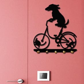 Decore sua casa ou presenteie seus amigos. Lindo Porta Chaves Fabricado com Mdf de 1a. qualidade sua pintura é a mesma utilizada em automóveis com aplicação de primer, lixamento e aplicação de tinta Laca automotiva na cor clássica preto Cadillac com acabamento acetinado. MDF de 3 mm e 6mm na base do suporte dos pinos. Produto resistente, leve e de fácil instalação. Especificações Técnicas: Medidas: comprimento: 30 cm altura: 2 cm largura: 30 cm Material: mdf 3mm Cor: preto Tema: cachorro Formas de instalação: basta utilizar fitas dupla face Quantidade: 1 unidade Características específicas: pinos dourados com acabamento
