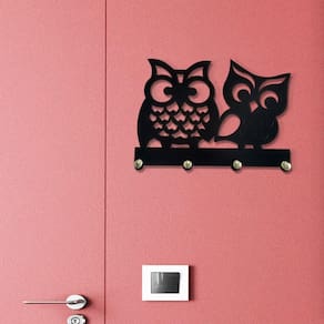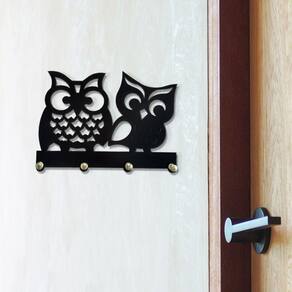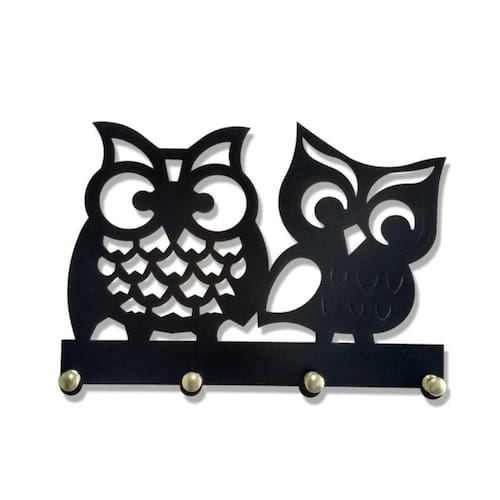 Decore sua casa ou presenteie seus amigos. Lindo Porta Chaves Fabricado com Mdf de 1a. qualidade sua pintura é a mesma utilizada em automóveis com aplicação de primer, lixamento e aplicação de tinta Laca automotiva na cor clássica preto Cadillac com acabamento acetinado. MDF de 3 mm e 6mm na base do suporte dos pinos. Produto resistente, leve e de fácil instalação. Especificações Técnicas: Medidas: comprimento: 16 cm altura: 2 cm largura: 15 cm Material: mdf 3mm Cor: preto Tema: coruja Formas de instalação: basta utilizar fitas dupla face Quantidade: 1 unidade Características específicas: pinos dourados com acabamento
