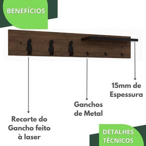 Modo de instalar: Parafusar os ganchos na madeira, furar a parede e parafusar o porta chaves na parede.
