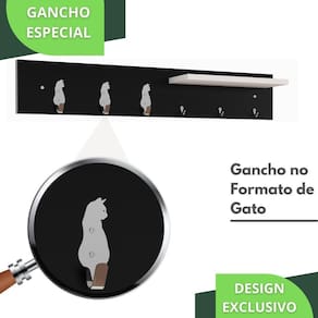 Os ganchos de aço proporcionam mais resistência e segurança para armazenar seus objetos preferidos. O gancho no formato de Gato faz com que seu ambiente fique alegre e com muita personalidade, dando um toque especial no seu lar.
