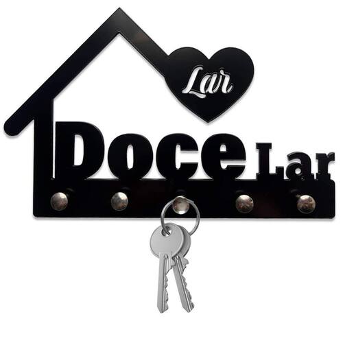 Porta Chaves Doce Lar Decoração Criativa Cor: Preto O Porta Chaves Doce Lar é excelente para uma decoração criativa, divertida e que nos lembra que nada melhor do que estarmos em nosso lar DOCE LAR. Criatividade até na hora de organizar as suas chaves. Características: Possui 5 pinos para chaves. Dimensões: 19,512,5 cm Material: feito de PSI 2mm, material semelhante a acrílico, cortado a laser, adesivado especial Conservação: Pano macio úmido com água e sabão neutro Fixação: Adesivo dupla face para aplicação em qualquer tipo de superfície lisa. Acompanha fita dupla face para fixação à parede. Marca: Não Informado